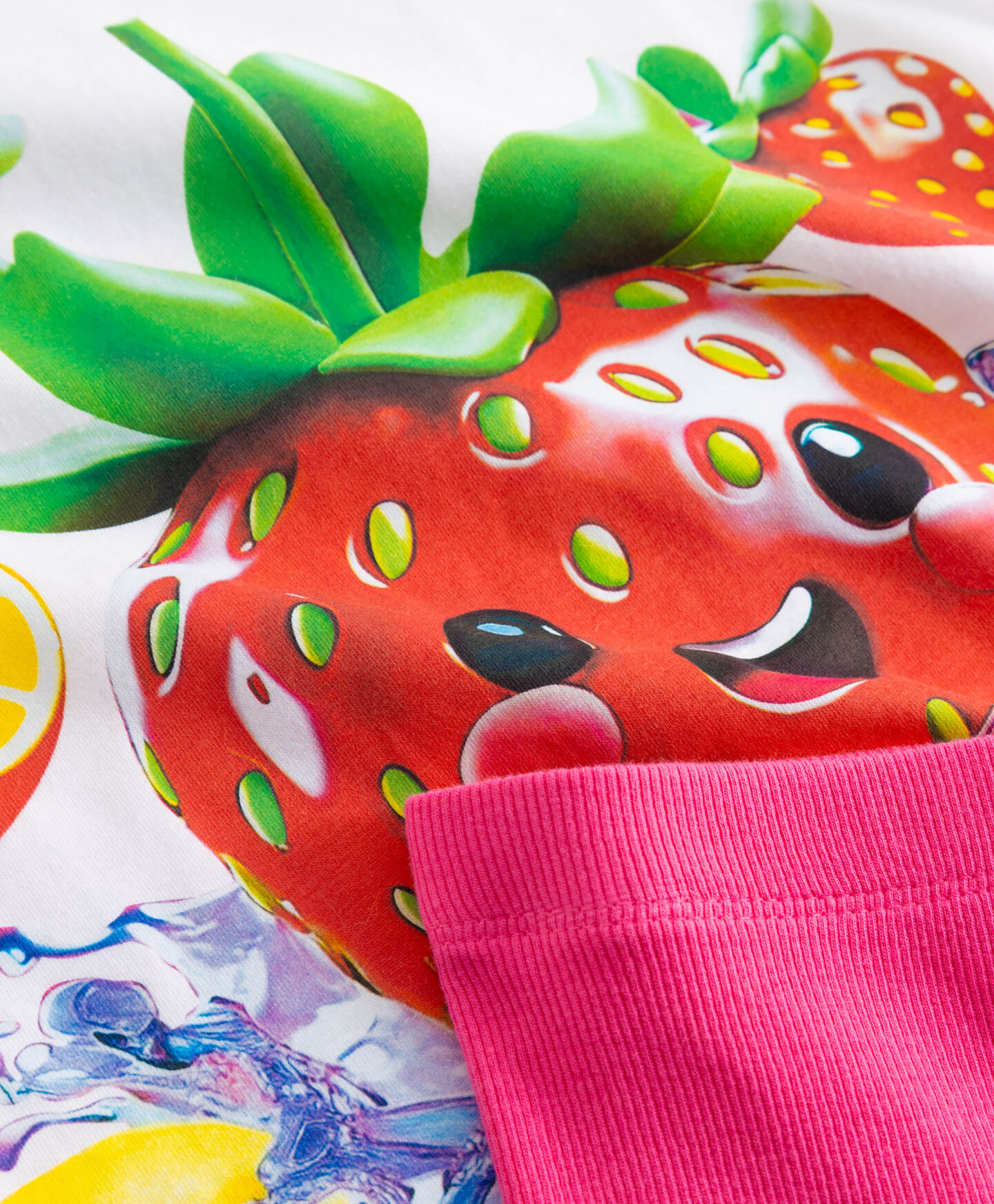 Setul pentru fete cu model cu fructe este format dintr-un tricou și colanți scurți. Tricoul este realizat din bumbac moale, plăcut la atingere. Colanții, cu conținut ridicat de bumbac, sunt elastici și se așază frumos pe corp, fără să limiteze mișcarea și joaca. Sunt disponibile diverse modele.