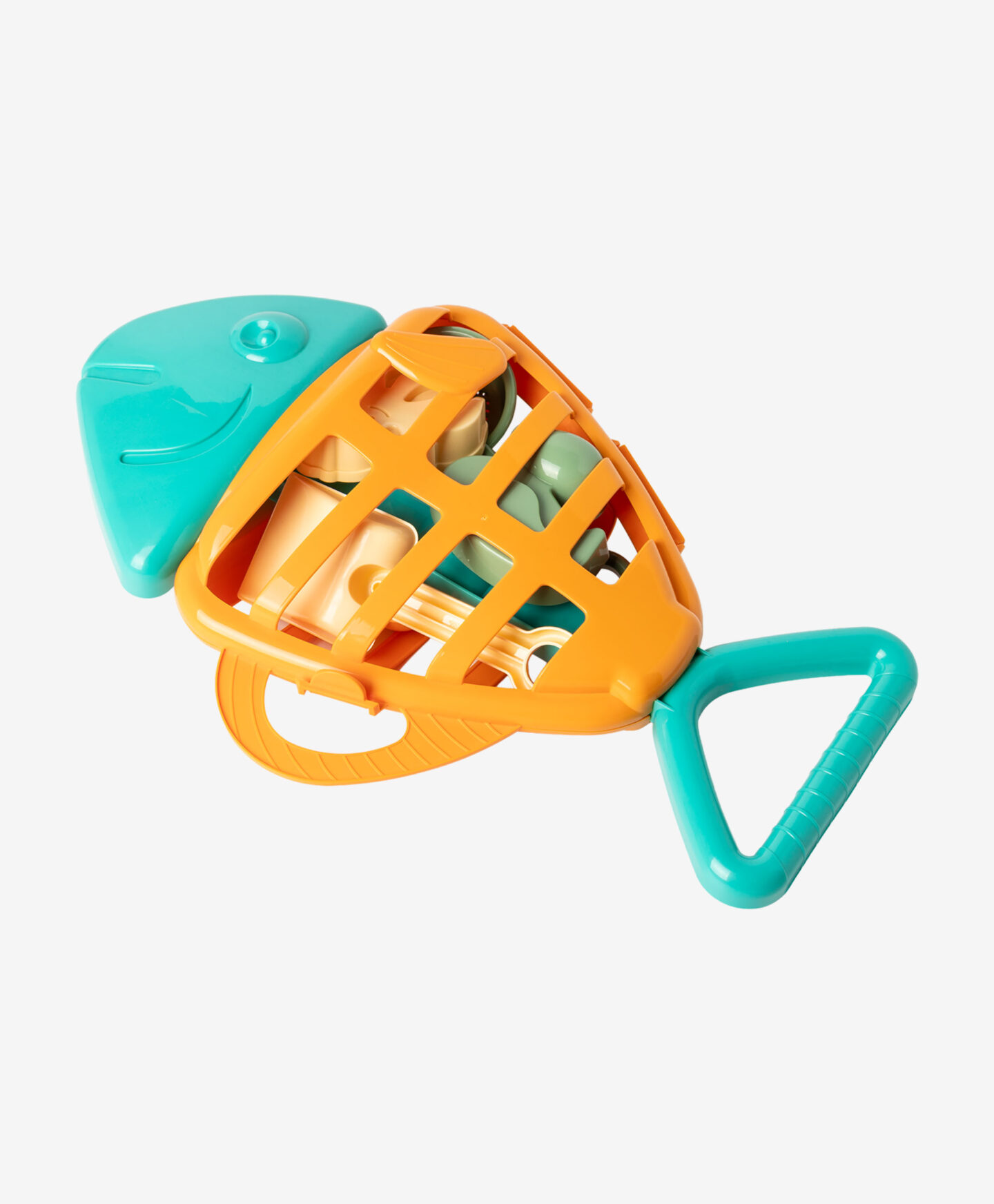 Setul pentru nisip în formă de pește este alegerea perfectă pentru copiii care iubesc joaca în nisipar. Realizat din plastic ușor, setul este durabil, ușor de folosit și perfect pentru mâinile mici. Conține tot ce este necesar pentru construirea castelelor sau a altor forme din nisip. În pește se găsesc 3 lopățele și 2 forme. Mânerul practic îi permite copilului să își transporte singur jucăriile preferate. În ofertă sunt disponibile mai multe modele.