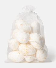 Setul de ouă albe din polistiren, în săculeț (6 cm), este o soluție practică pentru cei care caută un material versatil pentru decorațiuni și proiecte creative. Sunt ușoare, durabile și complet sigure. Se potrivesc ca decor de masă, așezate printre farfurii, sau ca element într-un aranjament pascal. Le poți pune și în ghivece, coșuri cu decorațiuni de Paște sau le poți folosi la vânătoarea de ouă, implicându-i pe cei mici. Sunt disponibile diverse modele.