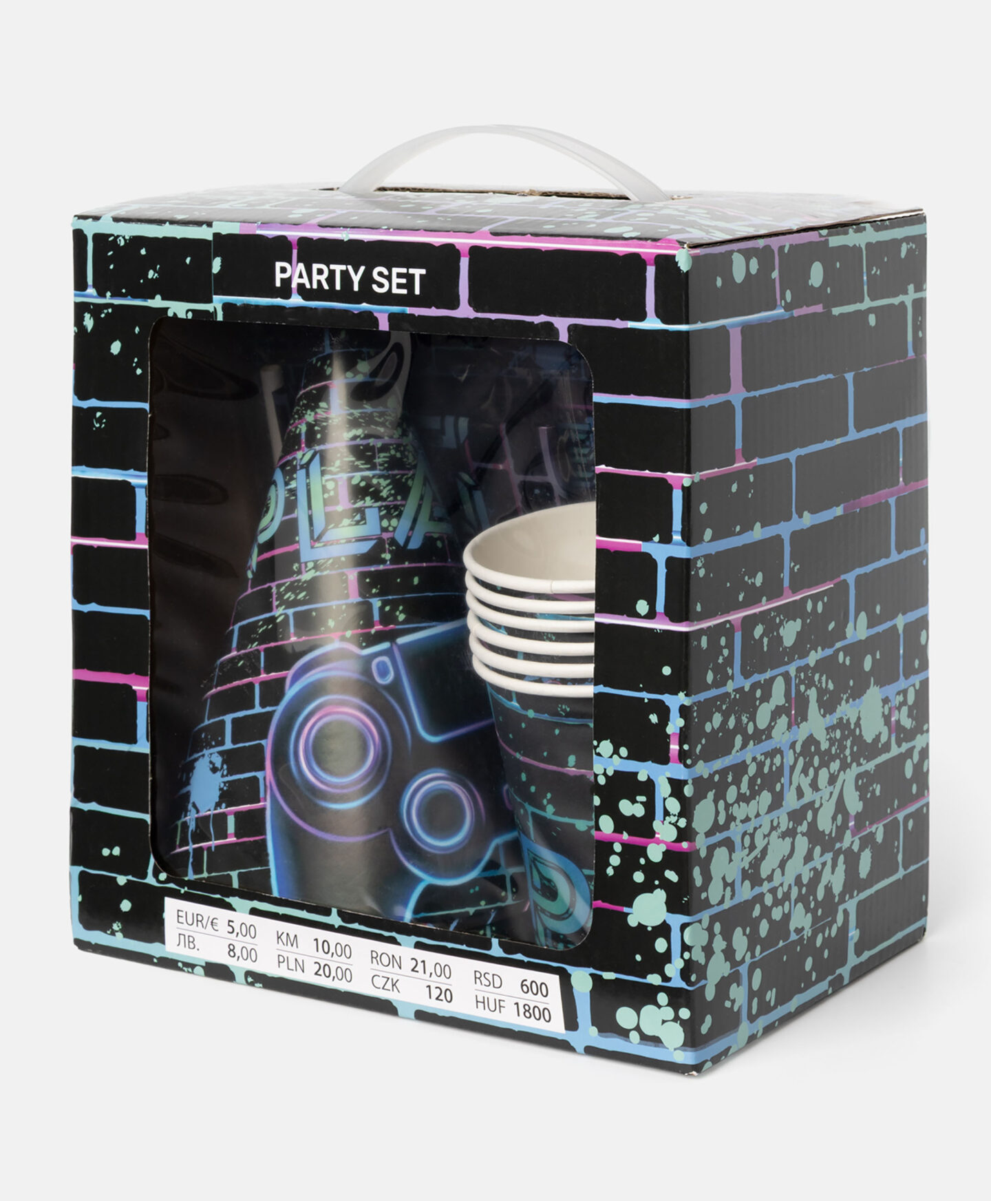 Setul de petrecere pentru copii din 30 piese este decorațiunea perfectă pentru ziua de naștere a celui mic. Setul include farfurii, pahare, șervețele, baloane și coifuri de petrecere.