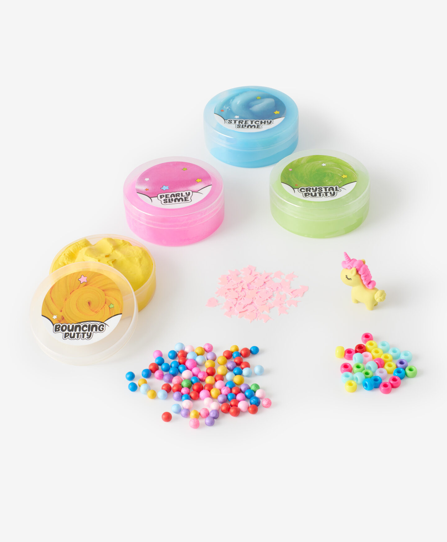 Setul de slime este pentru tine dacă iubești să creezi propriile compoziții și să experimentezi cu formele lor. Include diverse ingrediente și adaosuri pentru a obține culori și texturi diferite. Activitatea îți stimulează imaginația și oferă satisfacția creației proprii.
