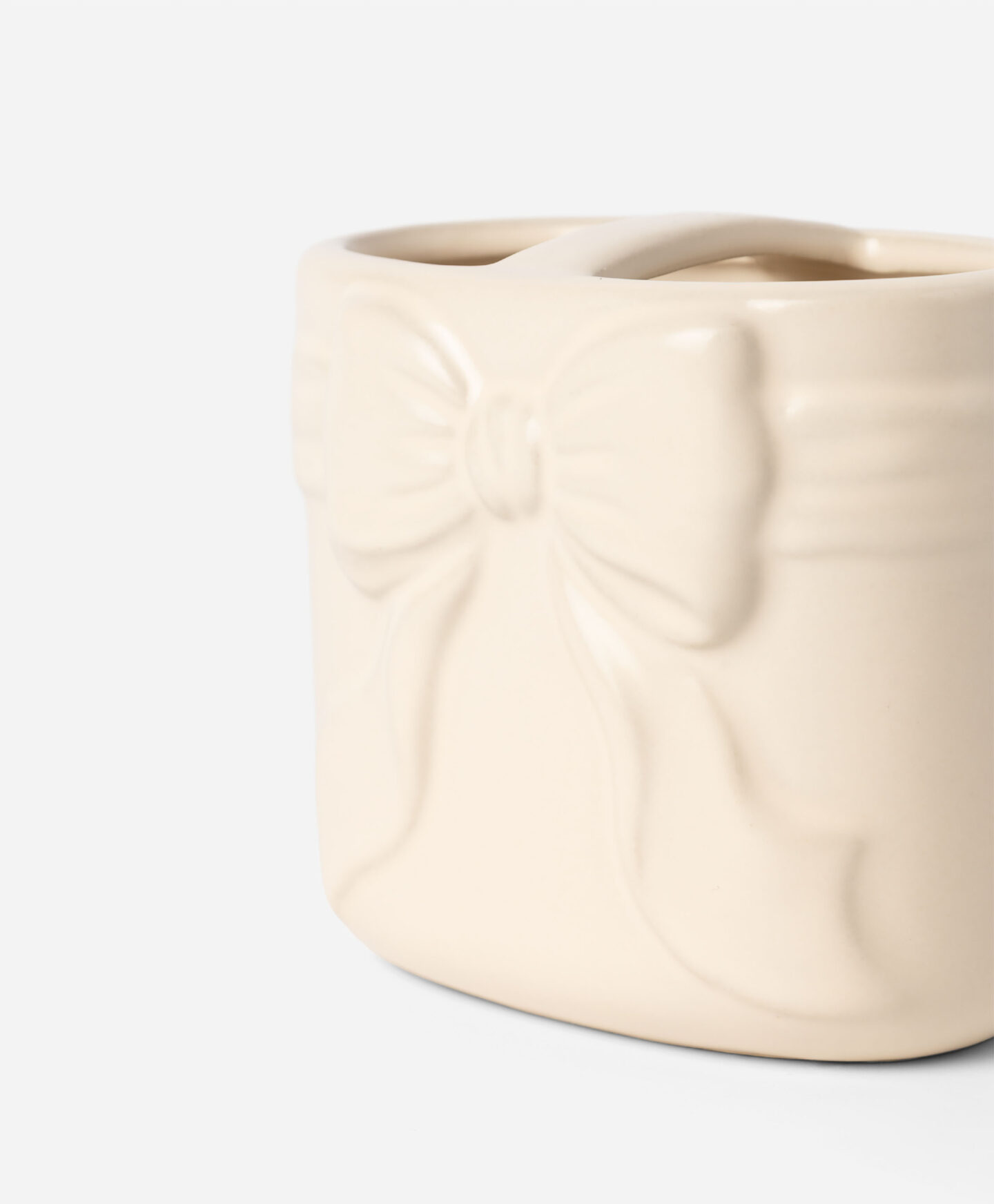 Suportul ceramic pentru periuțe de dinți cu fundă are compartimente spațioase și un finisaj estetic. Realizat din stoneware, este rezistent și ușor de curățat, potrivindu-se perfect cu restul accesoriilor de baie.