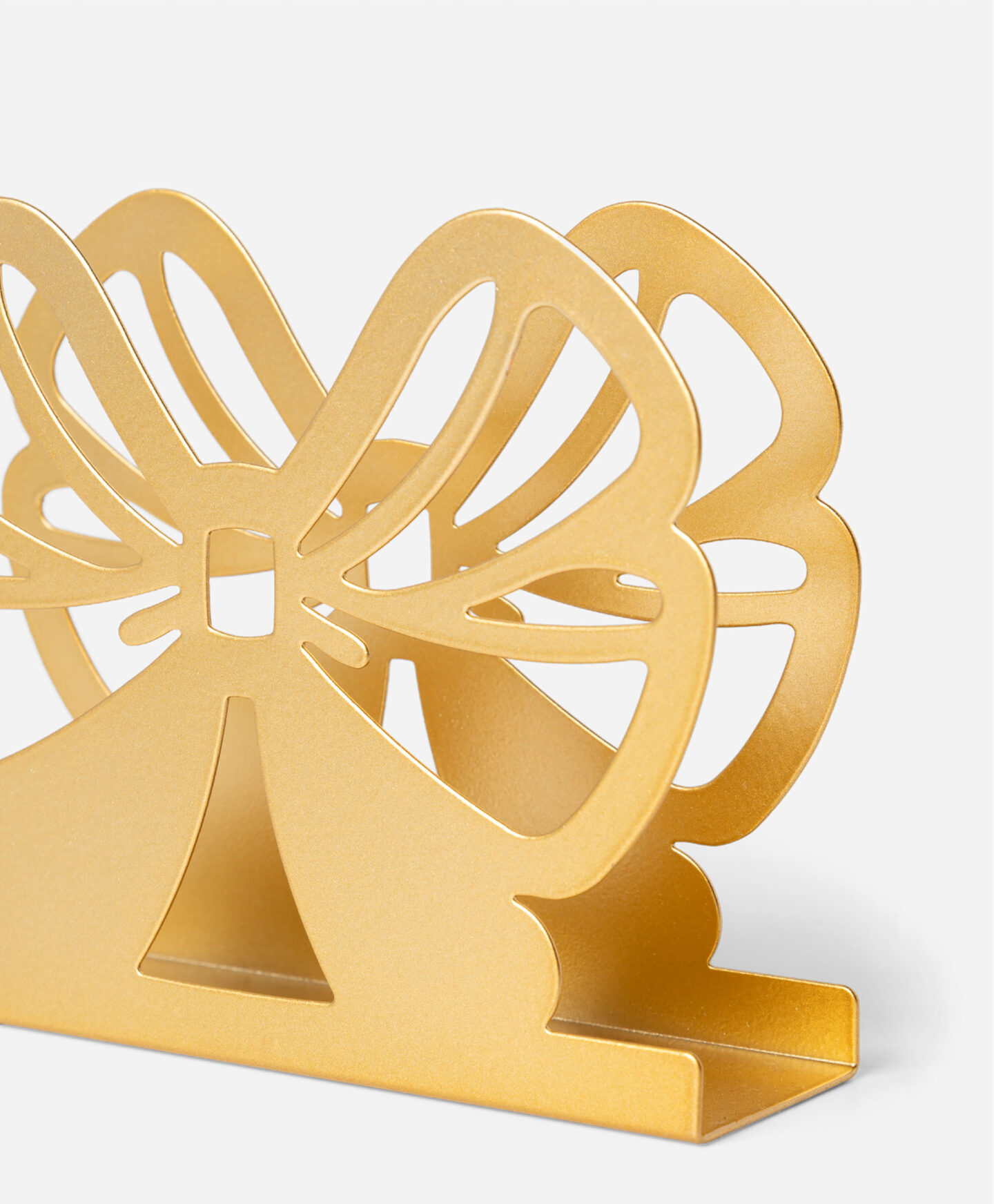 Suportul pentru șervețele în formă de fundă transformă orice aranjament de masă într-unul special. Culoarea aurie strălucitoare se potrivește atât cu veselă modernă, cât și clasică. Detaliul decorativ aduce un plus de rafinament.