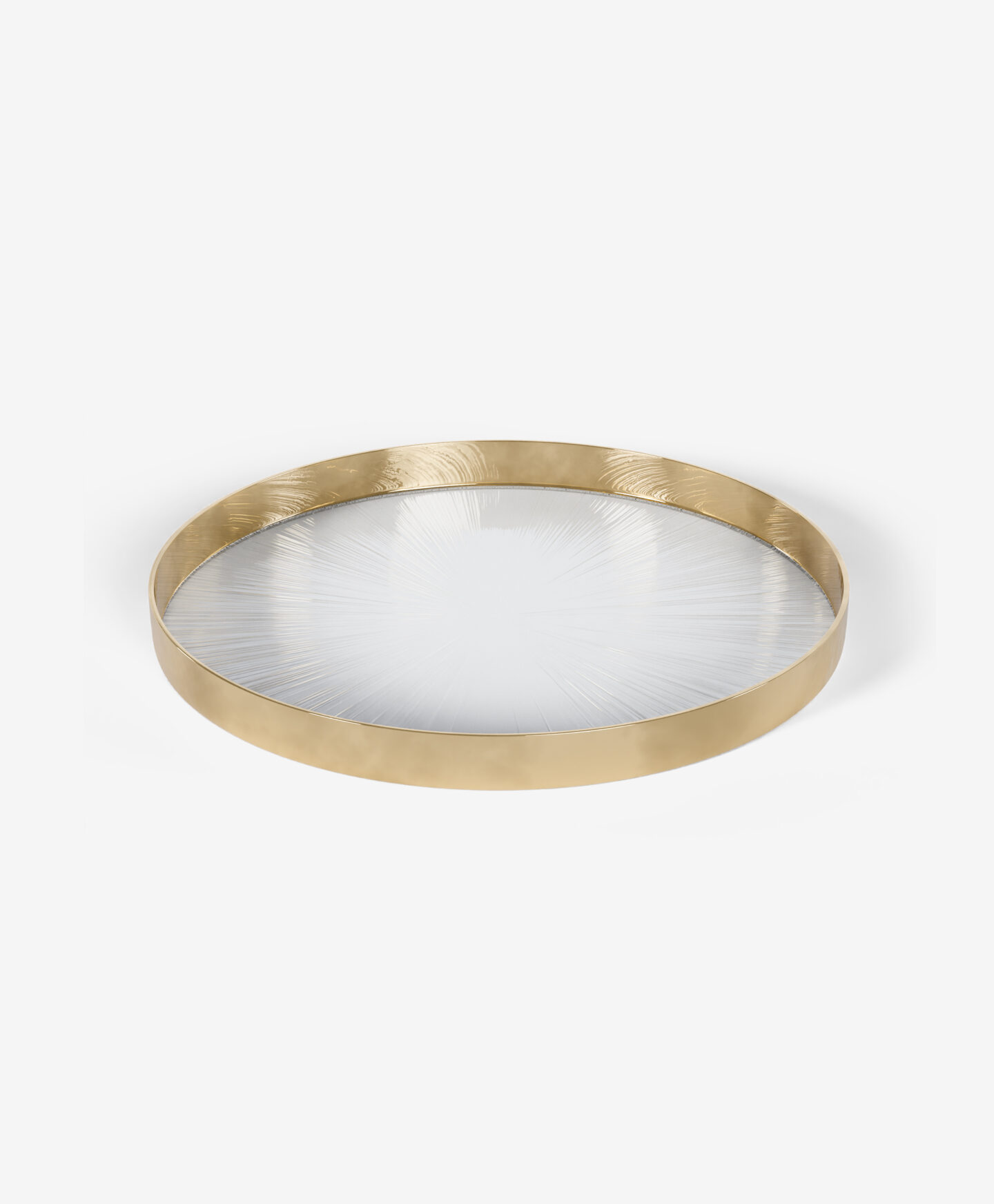 Tava cu margine aurie atrage privirea prin eleganță și strălucire. Este perfectă pentru servirea prăjiturilor de sărbătoare, dar și ca bază pentru decorațiuni – de la globuri la lumânări. Cu ajutorul ei, masa ta capătă o notă festivă și un strop de magie.