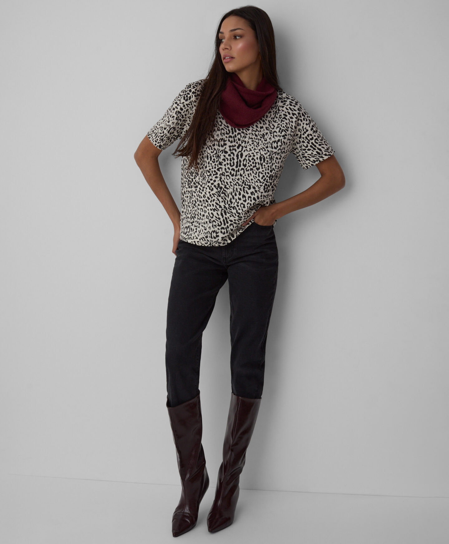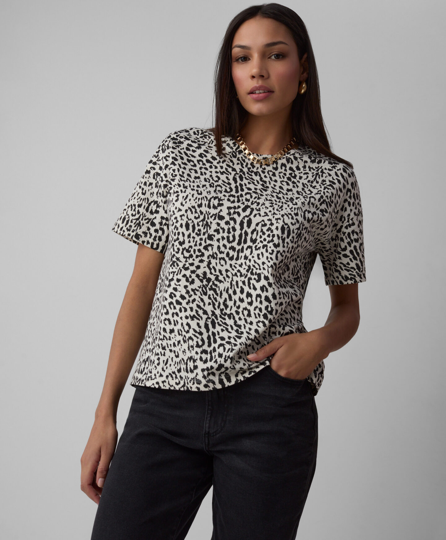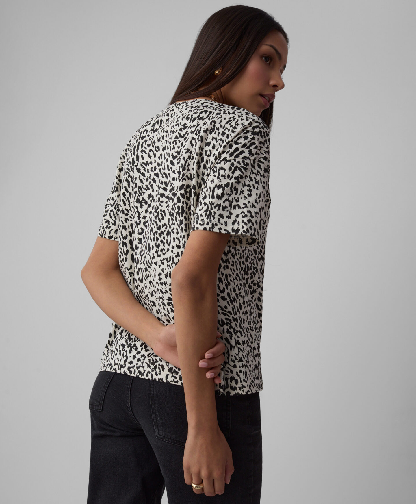 Tricoul pentru femei din 100% bumbac, cu imprimeu cu buline, este respirabil și delicat cu pielea. Oferă confort pe tot parcursul zilei. Este ideal pentru purtare individuală sau sub alte piese vestimentare.