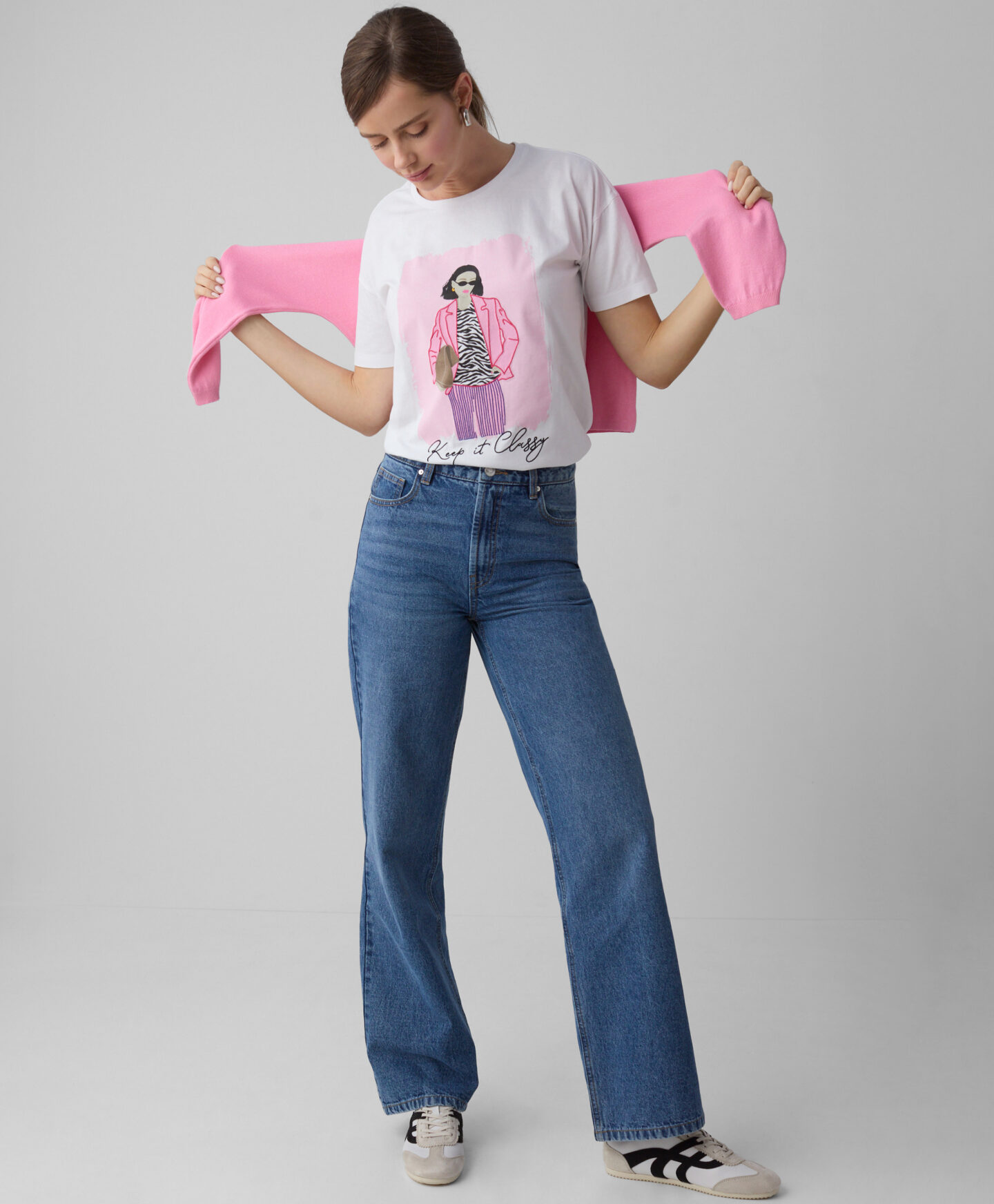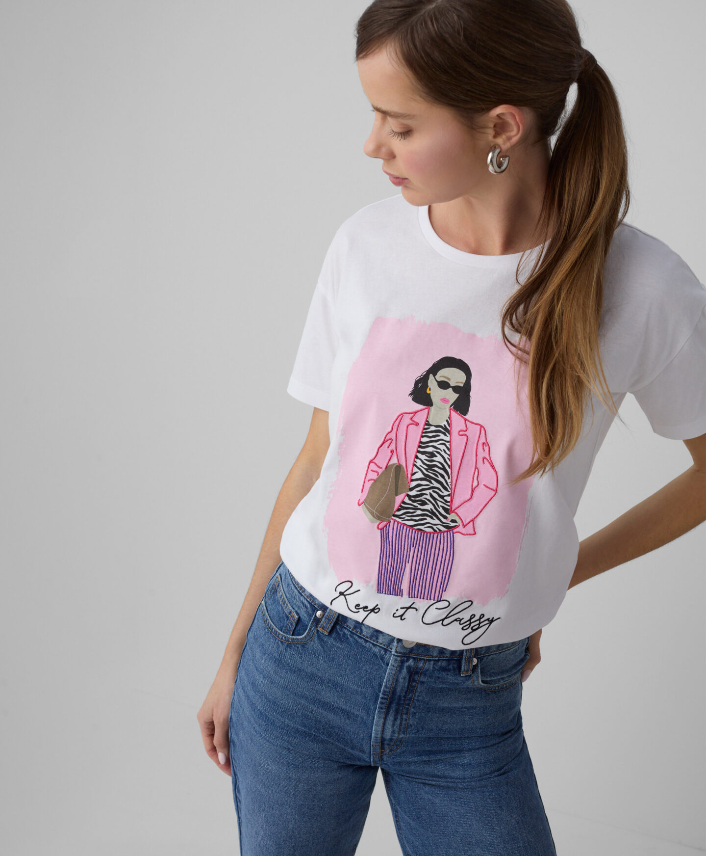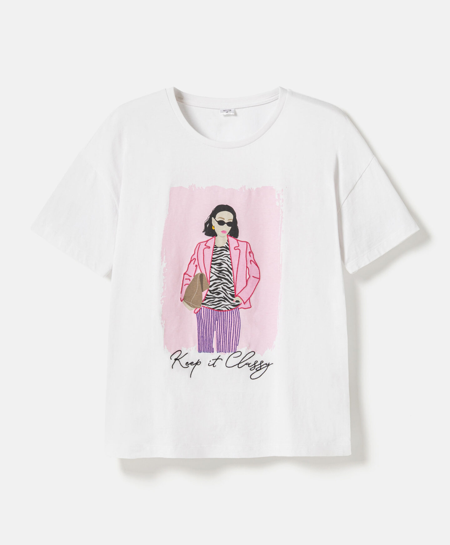 Tricoul pentru femei din 100% bumbac este ușor de întreținut și confortabil. Imprimeul modern îi oferă un aspect actual. Este potrivit pentru activități zilnice sau ținute casual.