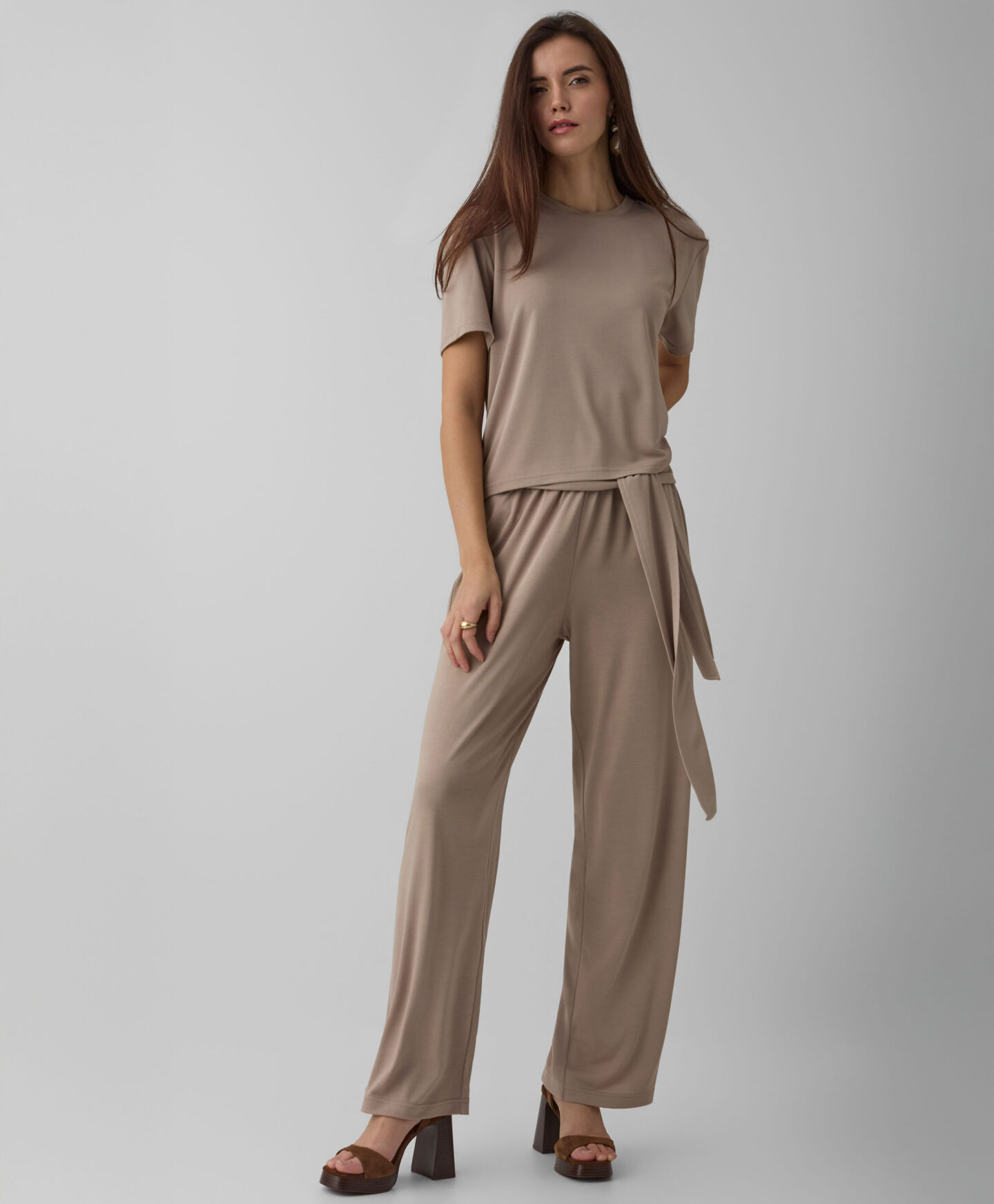 Tricoul pentru femei cu mâneci scurte completează perfect un set cu pantaloni cu cordon în talie, dar se potrivește la fel de bine cu majoritatea pieselor din garderobă. Croiala clasică și culoarea atemporală îl fac mereu actual. Materialul ușor și plăcut la atingere oferă confort pe tot parcursul zilei.