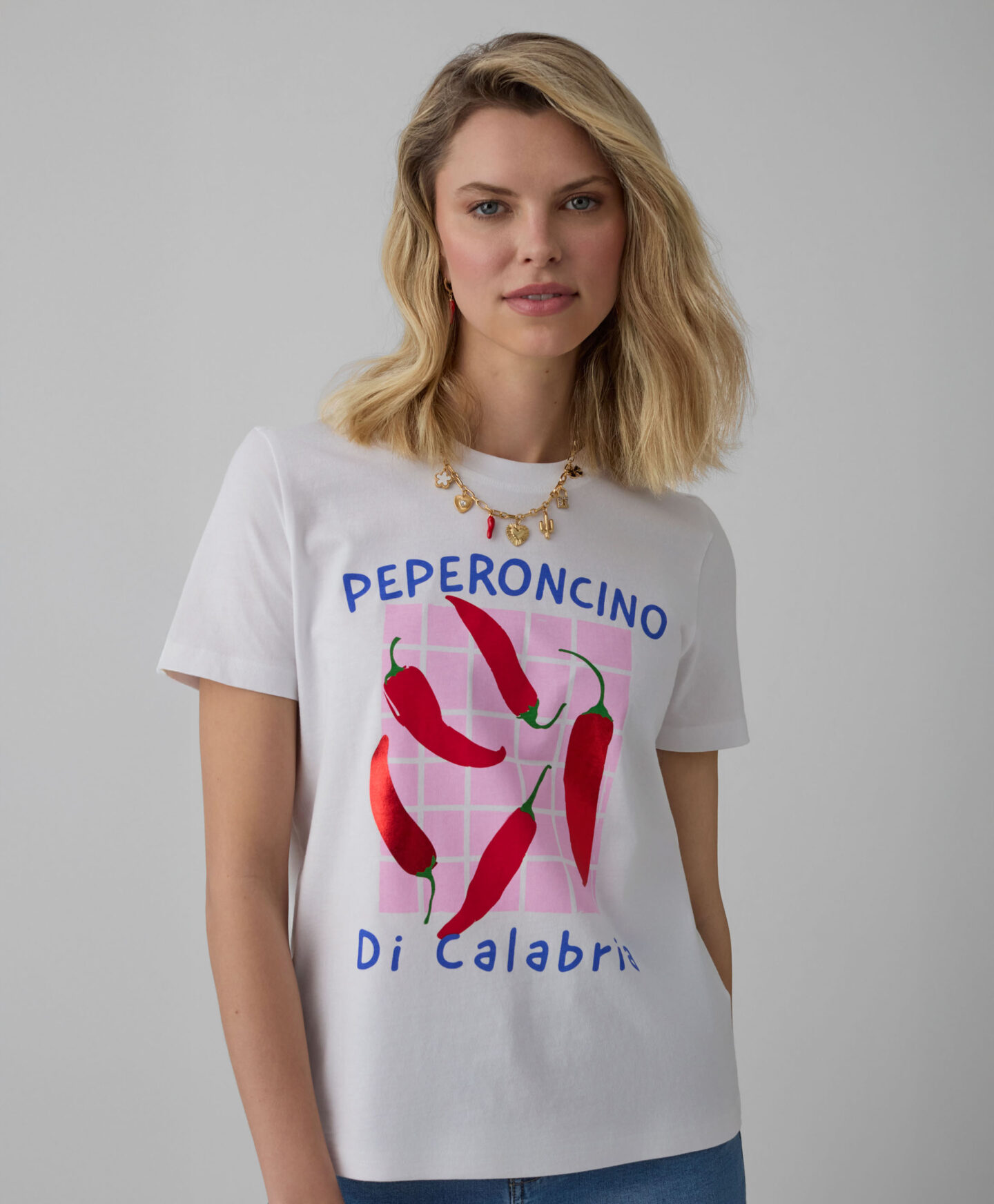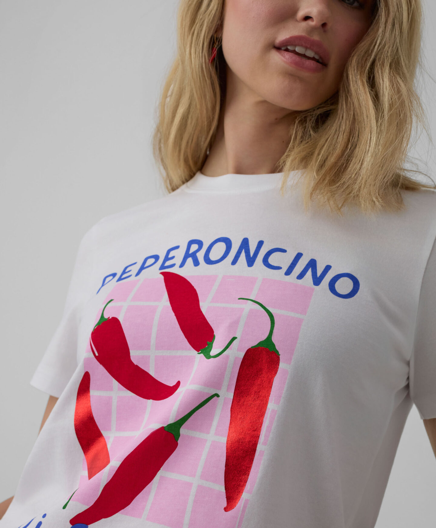 Tricoul pentru femei cu imprimeu grafic atrage privirile și adaugă personalitate ținutelor. Materialul ușor și respirabil permite purtarea confortabilă atât individual, cât și în combinații stratificate.