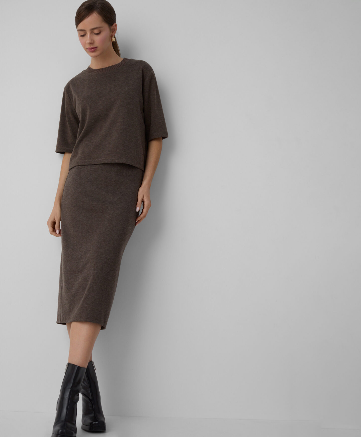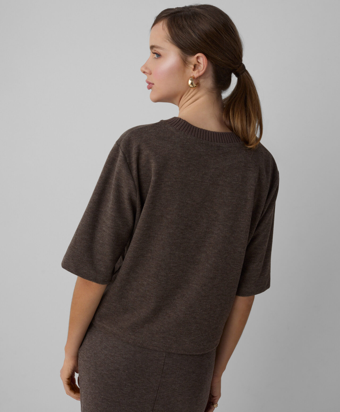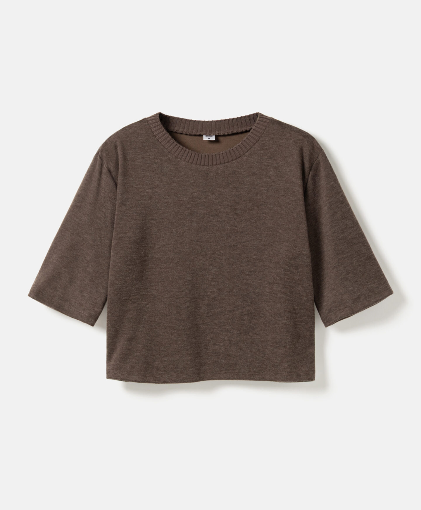Tricoul pentru femei cu finisaj tip pulover oferă un look modern și confortabil. Croiala lejeră permite libertate de mișcare. Se potrivește perfect cu fuste midi sau pantaloni asortați.