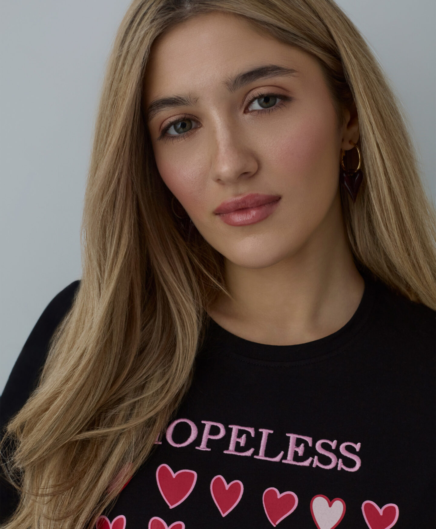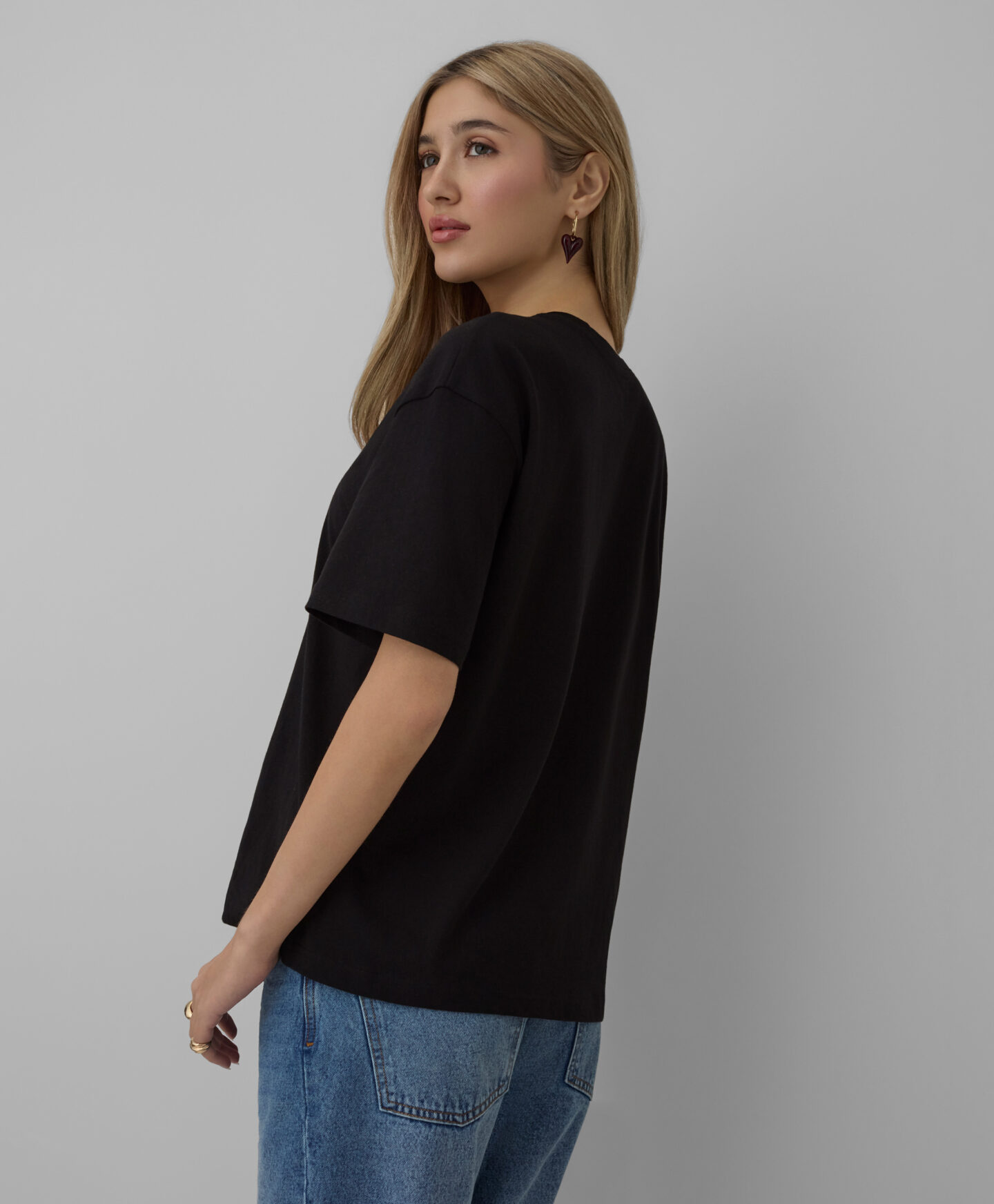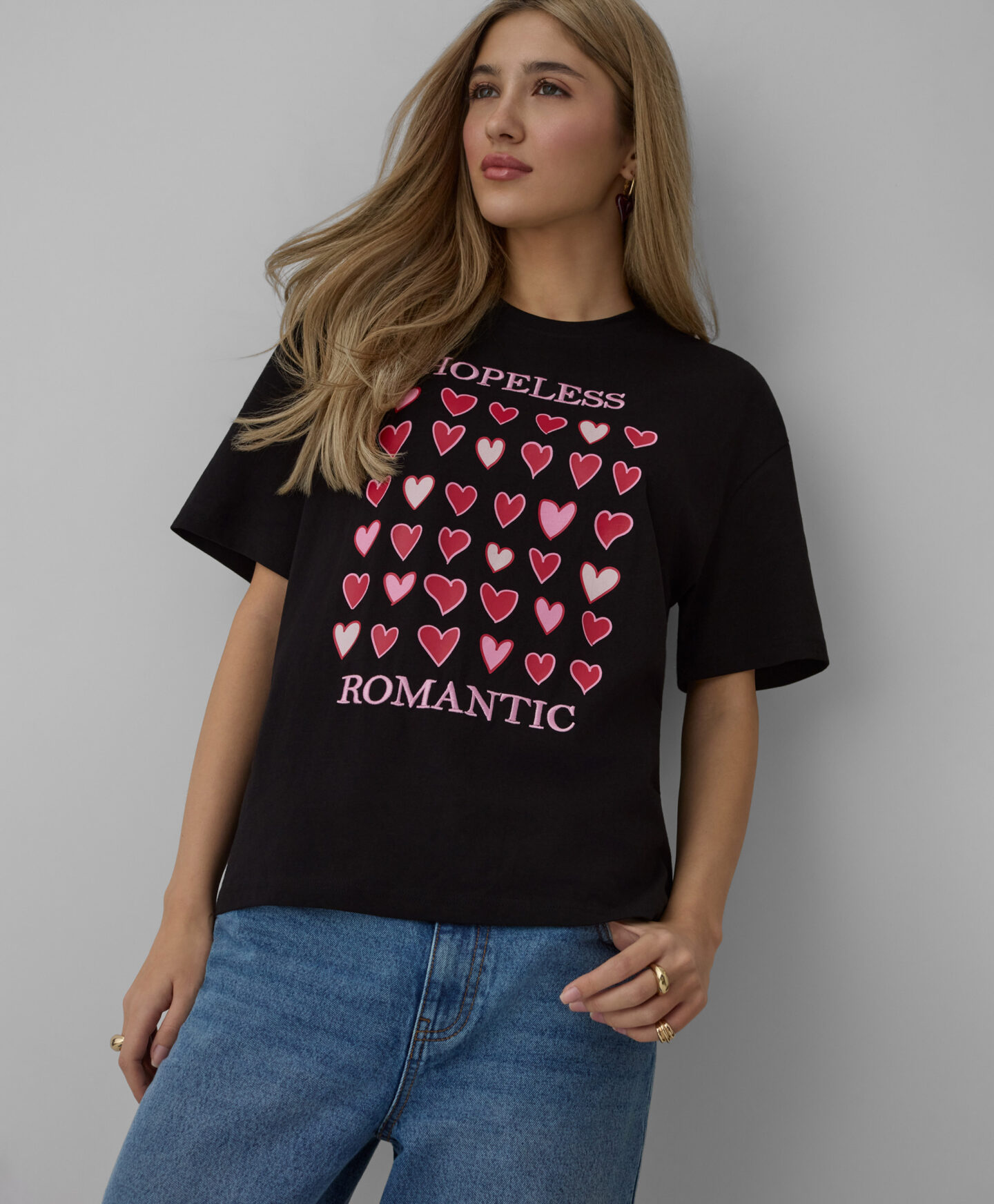 Tricoul pentru femei cu inimioare, cu mânecă scurtă, este o alegere pe care iubitoarele stilului clasic o vor aprecia. Imprimeul cu inimioare din partea frontală adaugă farmec oricărei ținute. Tricoul este ușor, moale la atingere și delicat cu pielea.