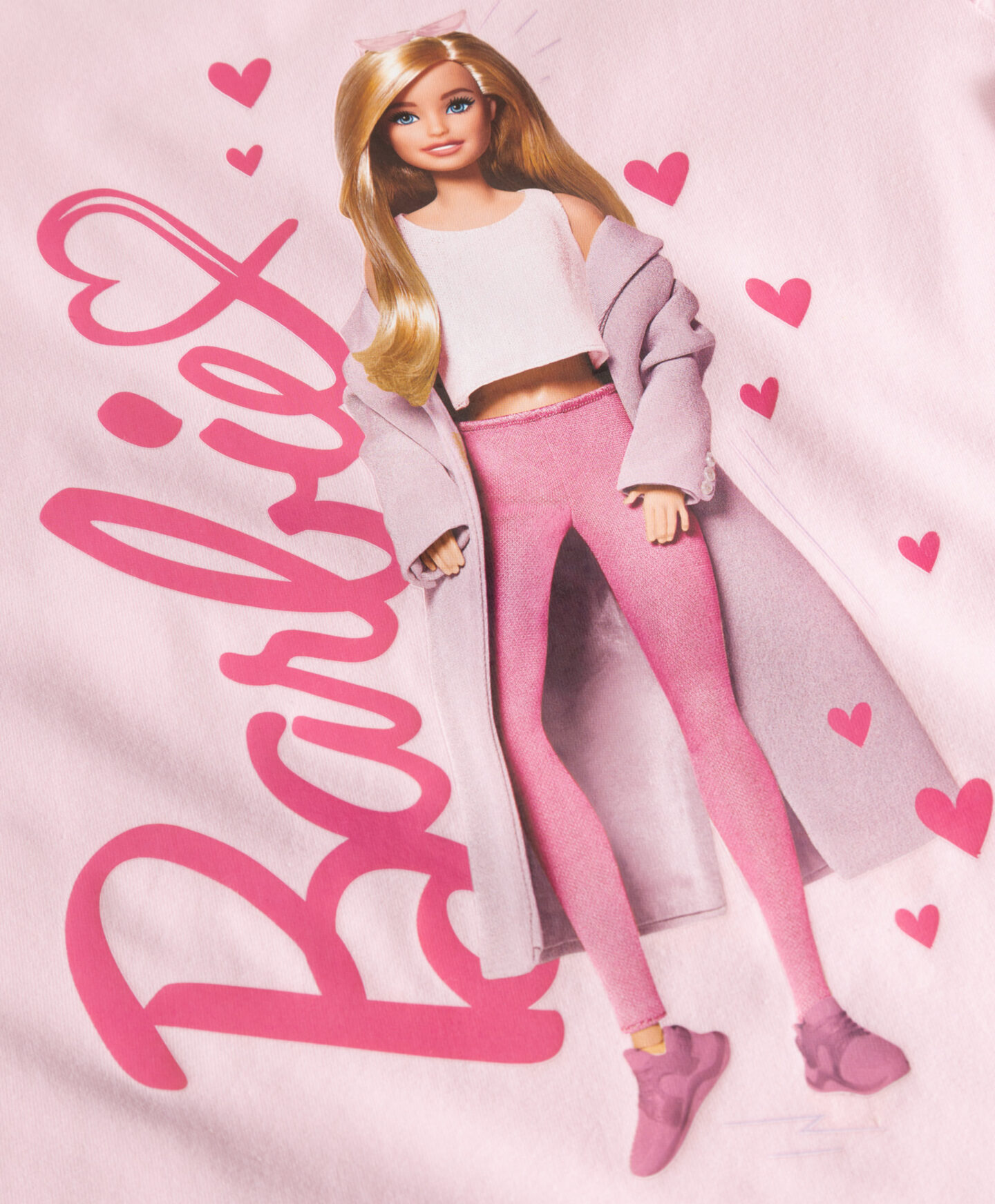 Tricoul pentru fete cu licență Barbie are volănașe delicate la mâneci, care adaugă un plus de lejeritate oricărei ținute. Se potrivește perfect atât cu fuste, cât și cu blugi. Imprimeul mare cu cea mai faimoasă păpușă din lume atrage privirile și scoate tricoul în evidență.