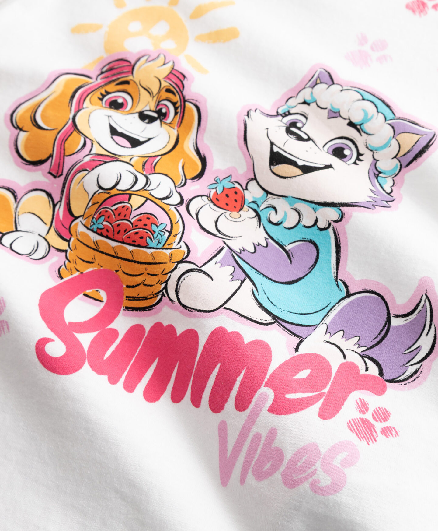 Tricoul pentru fete cu licență Paw Patrol 100% bumbac, cu mâneci scurte, se evidențiază prin imprimeul simpatic din față. Materialul moale este extrem de plăcut la atingere și permite pielii să respire. Este ideal pentru zilele călduroase și oferă confort pe tot parcursul purtării. Se potrivește perfect cu blugi, colanți sau fustă.