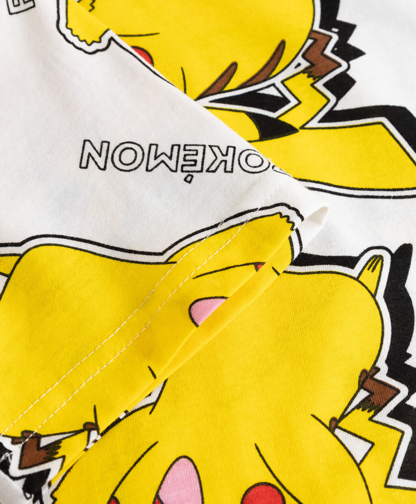 Tricoul Pokémon pentru băieți, realizat din 100% bumbac, cu mânecă scurtă, este o alegere excelentă. Imprimeul repetat cu Pikachu atrage atenția. Materialul natural și moale îl face ideal pentru purtare zilnică.