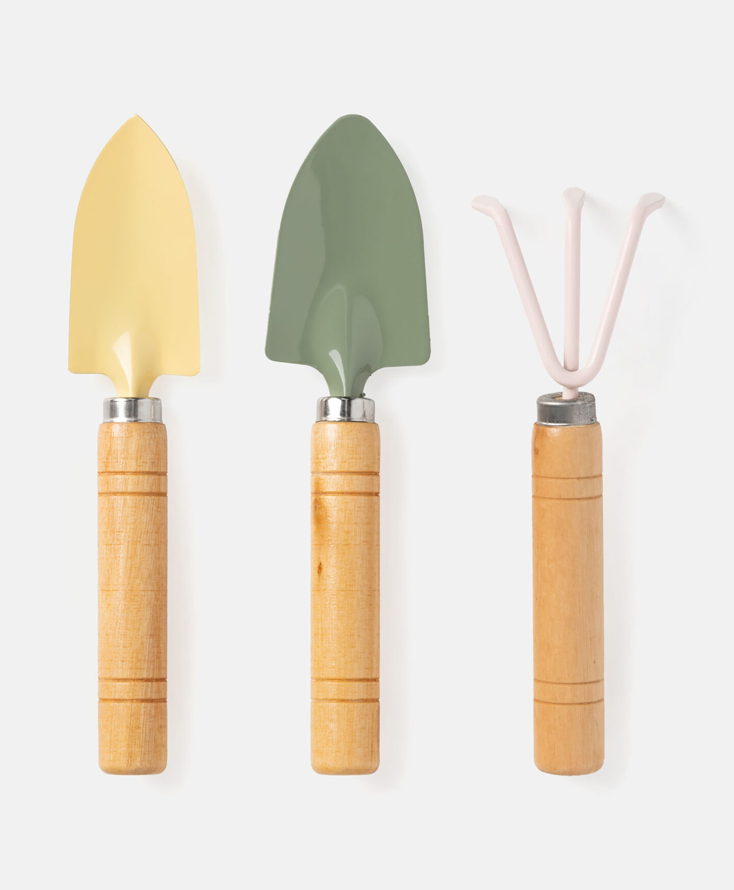 Setul unelte mici grădină 3 piese (2 lopățele și gheare) este un set practic pentru lucrări de grădinărit. Fiecare unealtă este realizată din metal durabil și are mâner ergonomic din lemn, oferind confort și control. Setul ocupă puțin spațiu și are un aspect estetic.