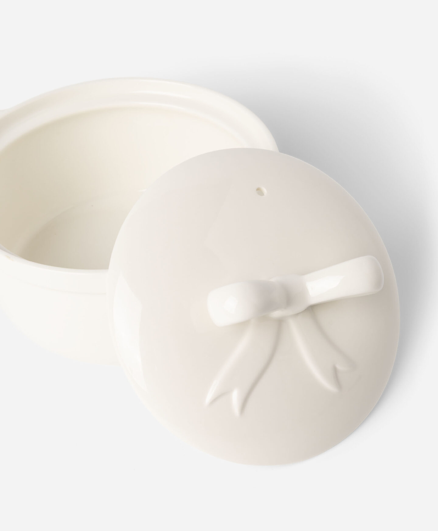 Vasul pentru copt cu capac și fundă este perfect pentru preparate la cuptor. Porțelanul New Bone China asigură distribuția uniformă a căldurii și un aspect elegant la servire.