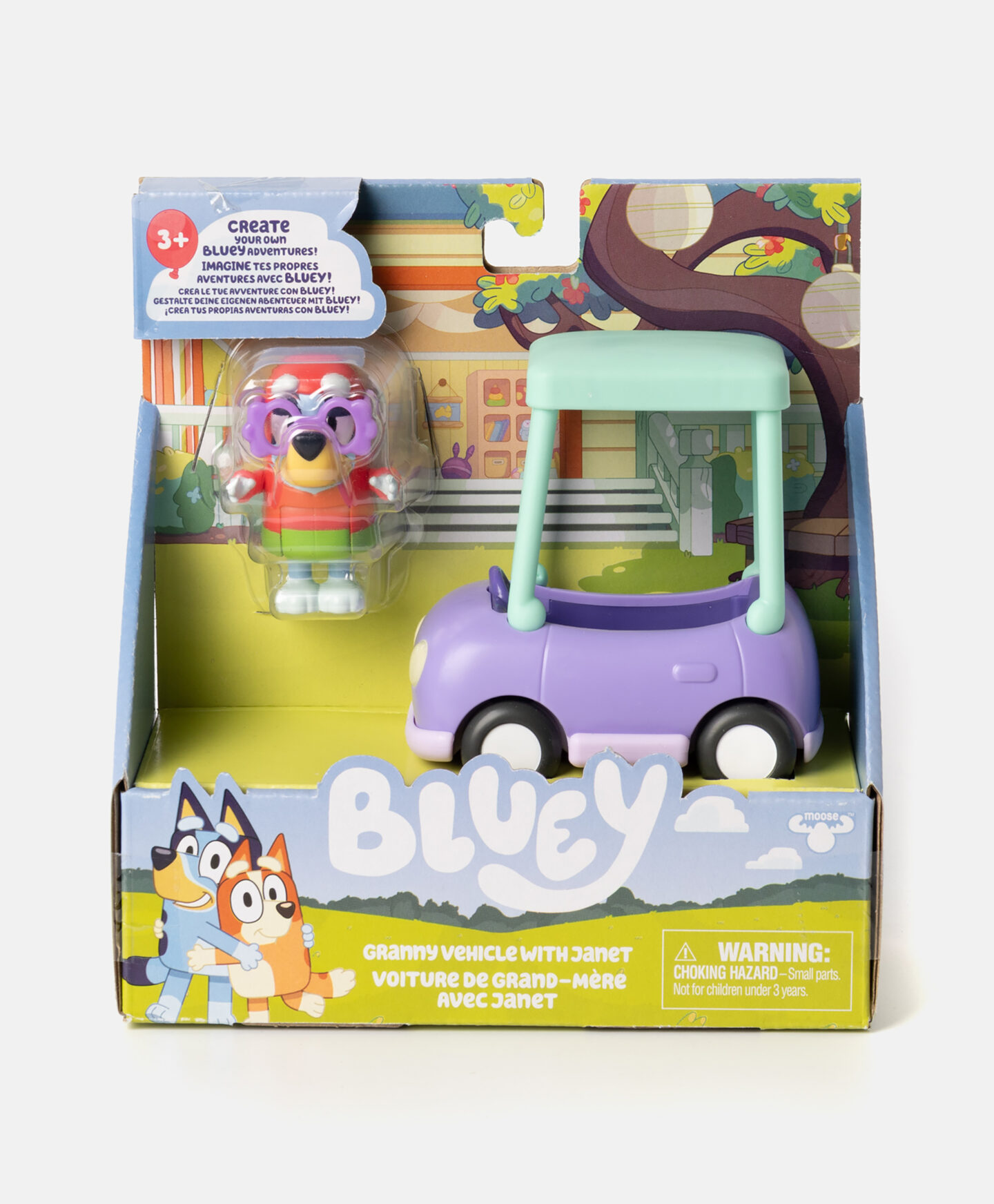 Vehiculul cu figurină cu licență Bluey este o adevărată bucurie pentru fanii mai mici și mai mari ai seriei animate. Permite recrearea scenelor din desenul animat cu personajele preferate și inventarea a nenumărate scenarii de joacă. Personajul Bluey costumată în Granny Janet va încânta orice fan al acestei povești emblematice.