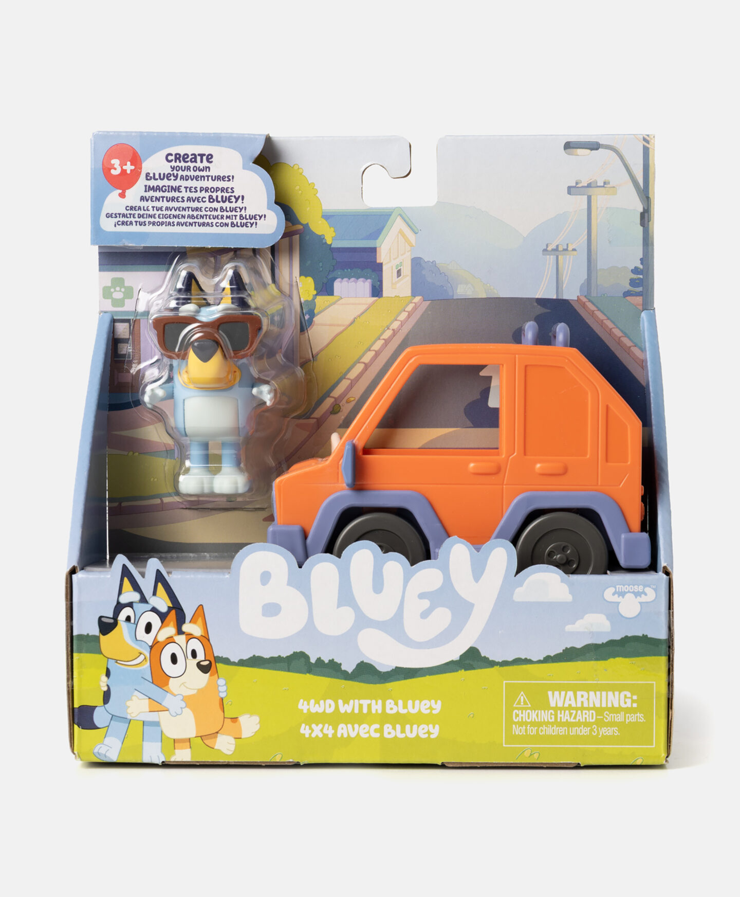 Vehiculul cu figurină cu licență Bluey este o adevărată bucurie pentru fanii mai mici și mai mari ai seriei animate. Permite recrearea scenelor din desenul animat cu personajele preferate și inventarea a nenumărate scenarii de joacă. Personajul Bluey cu ochelari de soare, pregătită pentru aventuri împreună, va încânta orice fan al acestei povești emblematice.