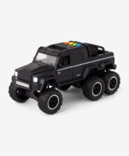 Vehiculul off-road negru este conceput pentru distracție dinamică. Cele șase roți mari îi oferă stabilitate și performanță pe diverse suprafețe. Bateriile sunt incluse.