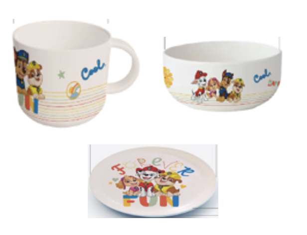 Cană din ceramică 230 ml. lic. Paw Patrol KIDS (PLU 620733 ); Bol din ceramică 540 ml. lic. Paw Patrol KIDS (PLU 620734 ); Farfurie din ceramică 19cm lic. Paw Patrol KIDS (PLU 620736 )